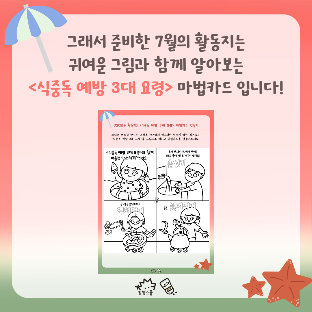 ✂ 더 재미있게 기억할 수 있도록 <식중독 예방 3대 요령>을 마법카드로 준비했어요.😚