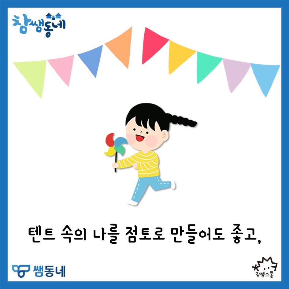 만든 텐트를 한 곳에 모아 캠핑장을 만들어보아도 좋답니다 :) 🏕🏕🏕🏕