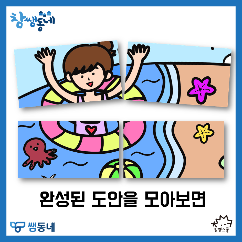 [참쌤동네] 우리반 모두 힘을 모아서!👥 여름방학 바다 협동화 도안🏖