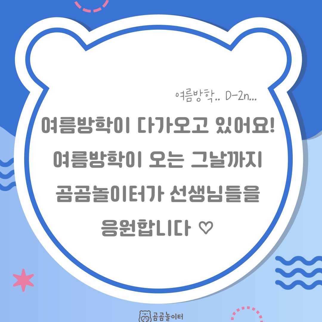 여름방학이 얼마 남지 않았어요! 여름방학을 맞이하는 그날까지 곰곰놀이터가 선생님을 응원해요 😍