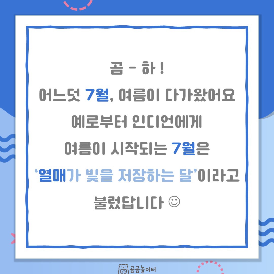어느덧 여름이 본격적으로 시작되는 7월이 다가왔습니다!