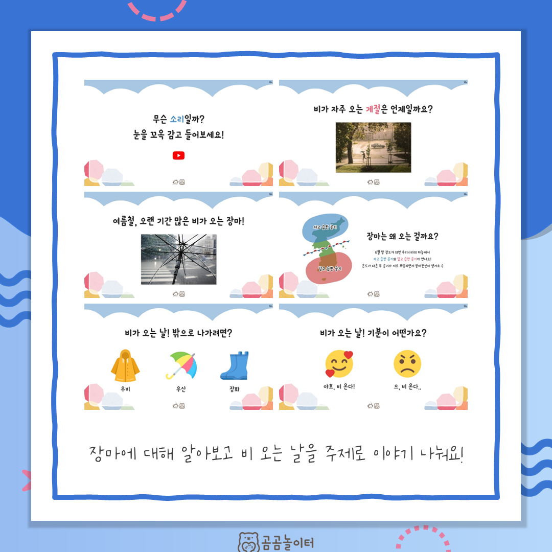 비 오는 날을 주제로 이야기 나눌 수 있는 PPT 자료와