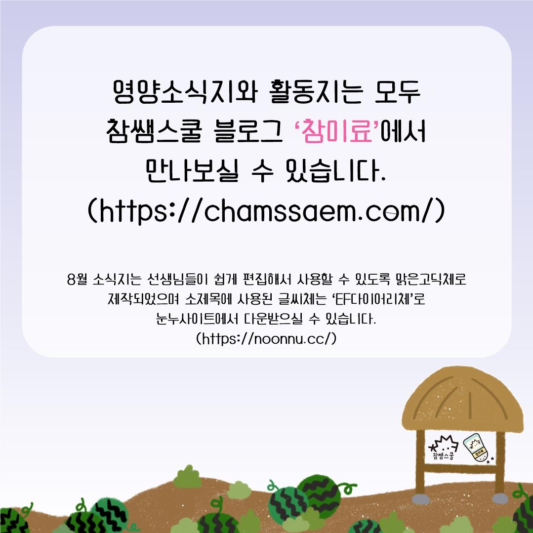 #참쌤스쿨 #참미료 #영양 #급식 #영양교육 #교육급식 #영양교사 #초등교사 #중등교사 #유치원 #초등학교 #중학교 #고등학교 #영양소식지 #계기교육 #광복절 #에너지의날 #절기 #채소의분류 #교육자료