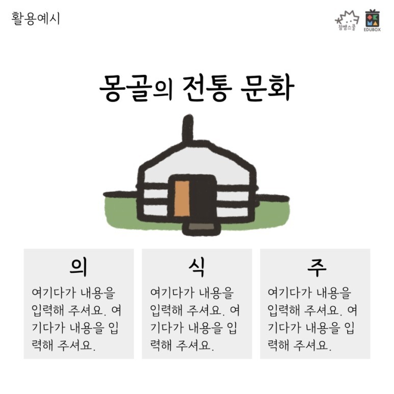세계 여러 문화에 대한 수업이나, 건축물 그리기 등에
