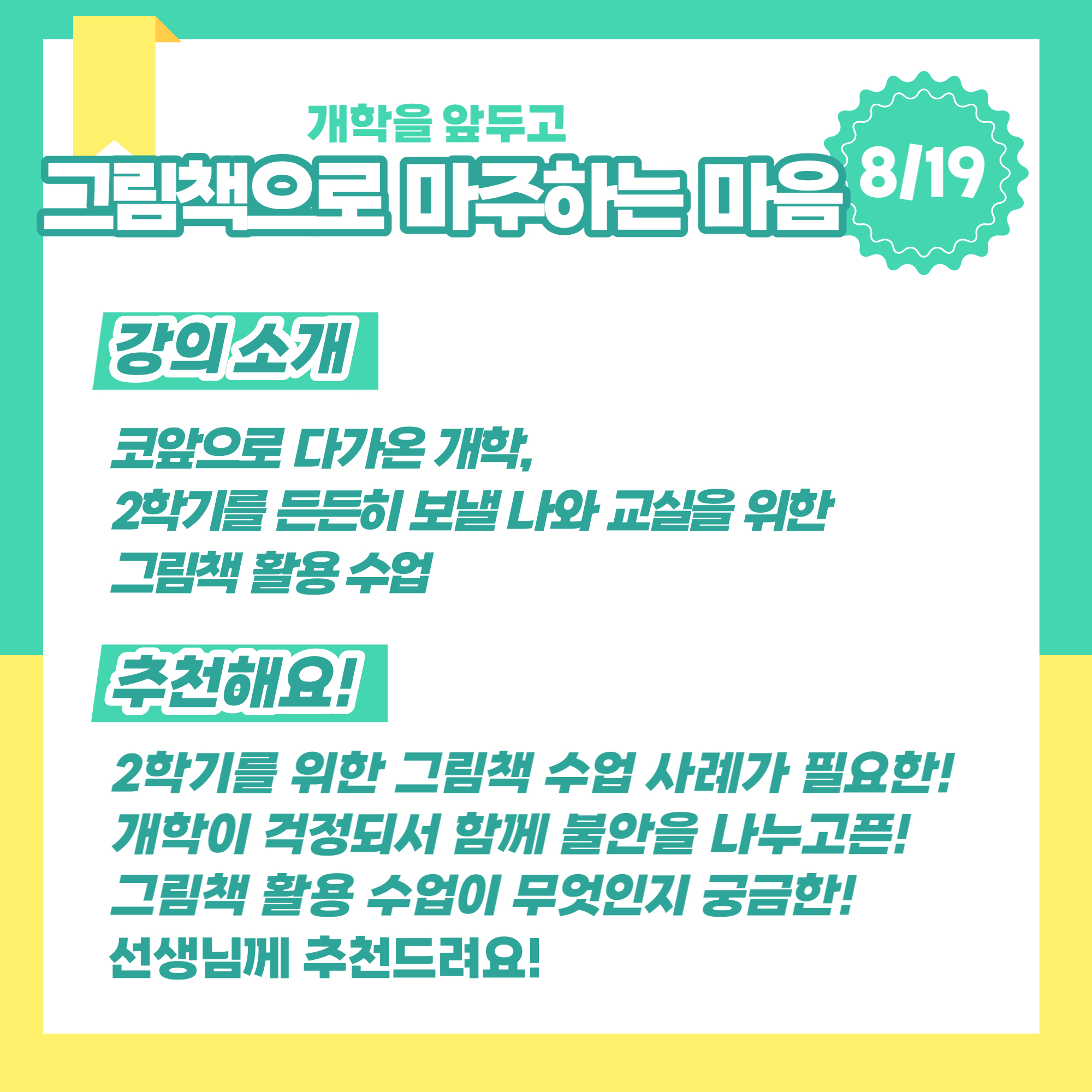 2학기를 든든히 보낼 나와 교실을 위한 그림책 활용 수업