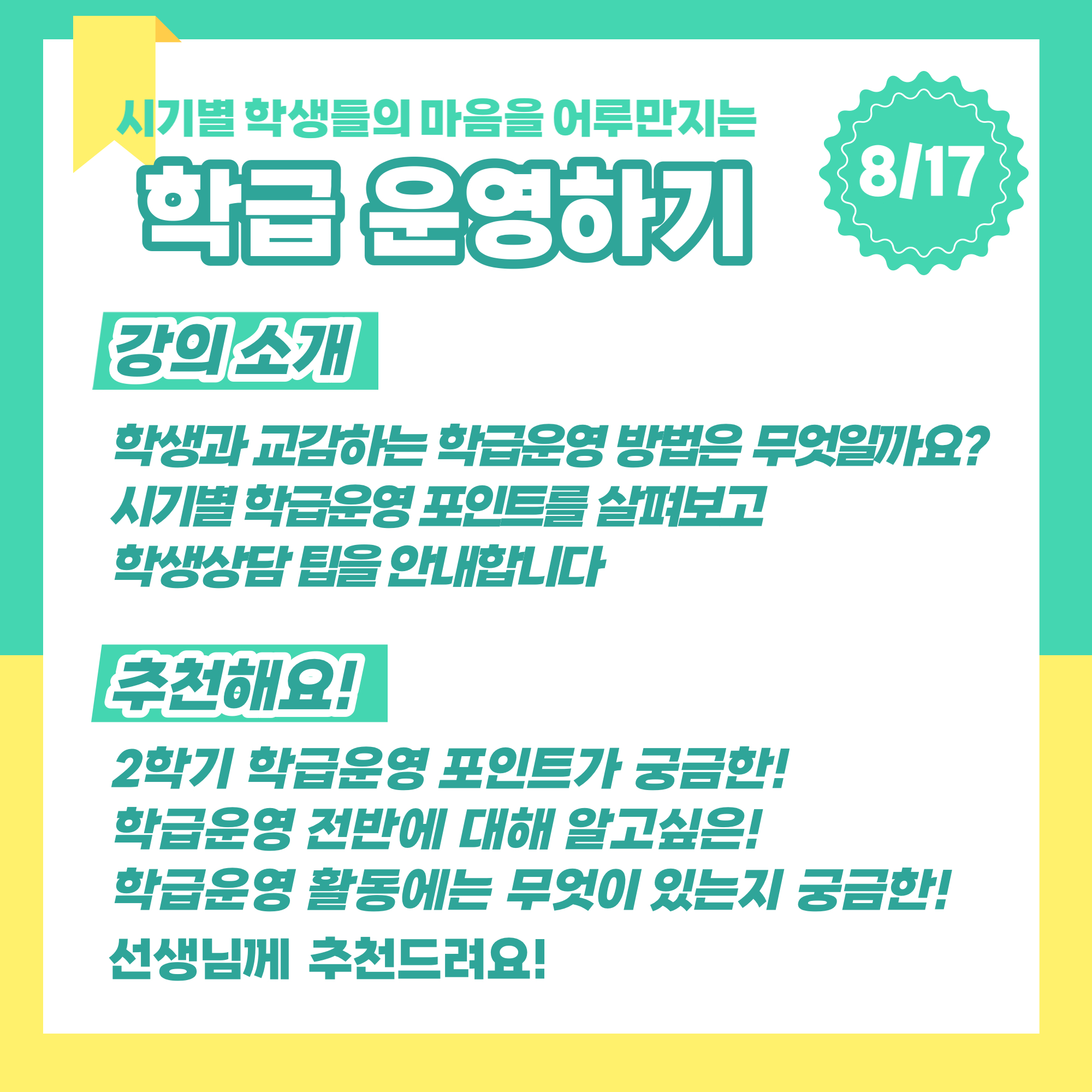 2학기 학급운영 포인트가 궁금한 선생님