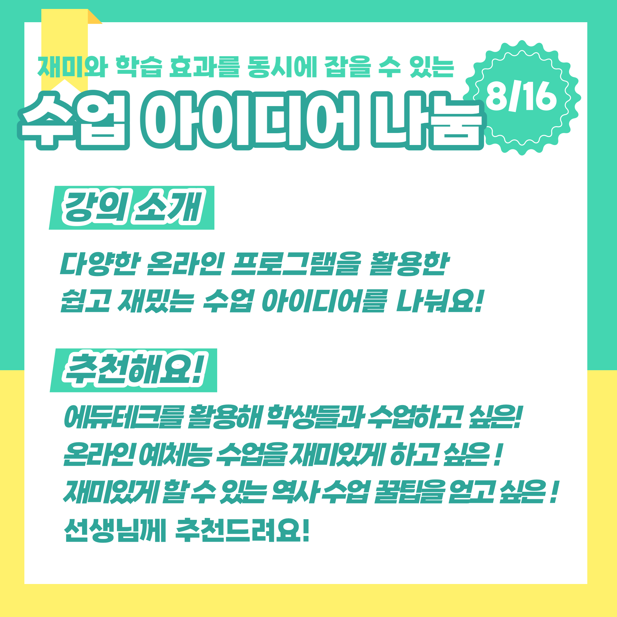 교과 수업에 재미를 더하고 싶은 선생님