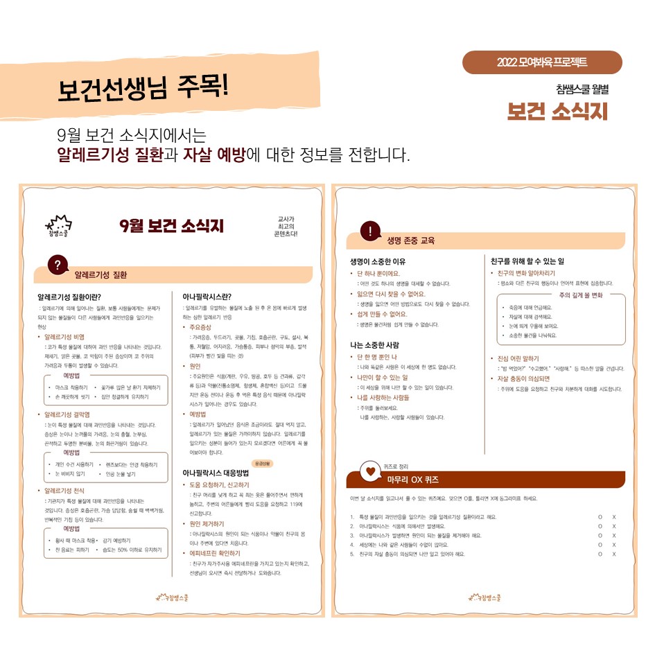 💡참쌤스쿨 6기 선생님들이 함께 만드는 보건 소식지,