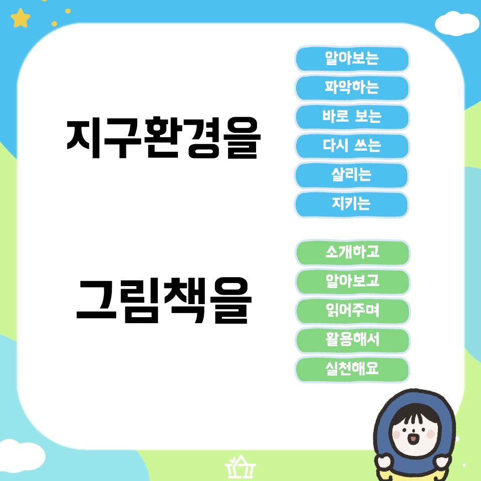 우리가 만드는 쓰레기로, 미세먼지로, 플라스틱으로 아픈 지구를 달래줄 그림책을 소개합니다.