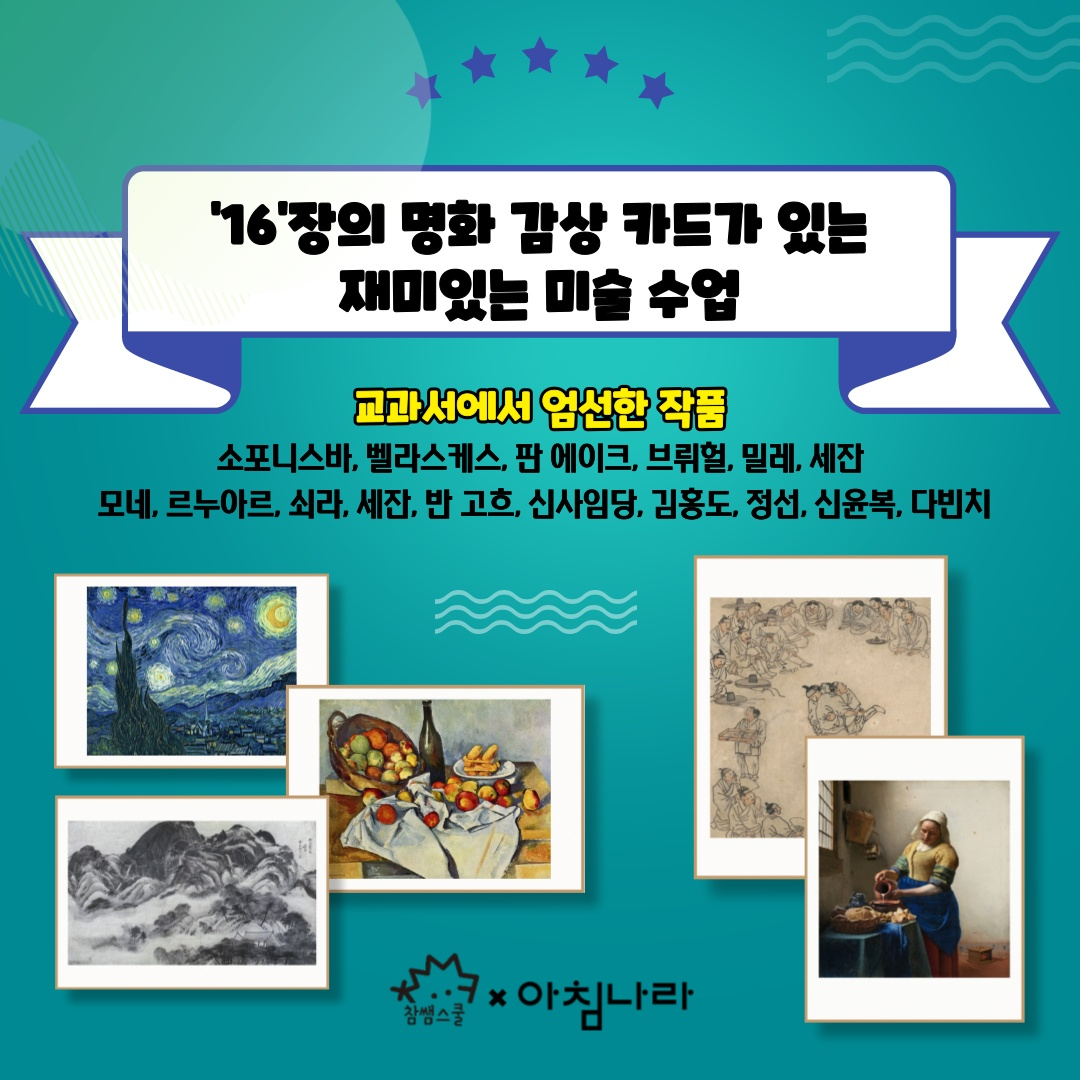 🌸참쌤스쿨과 아침나라 출판사가 교과서 엄선 명화들로 명화 감상 카드를 준비했습니다.