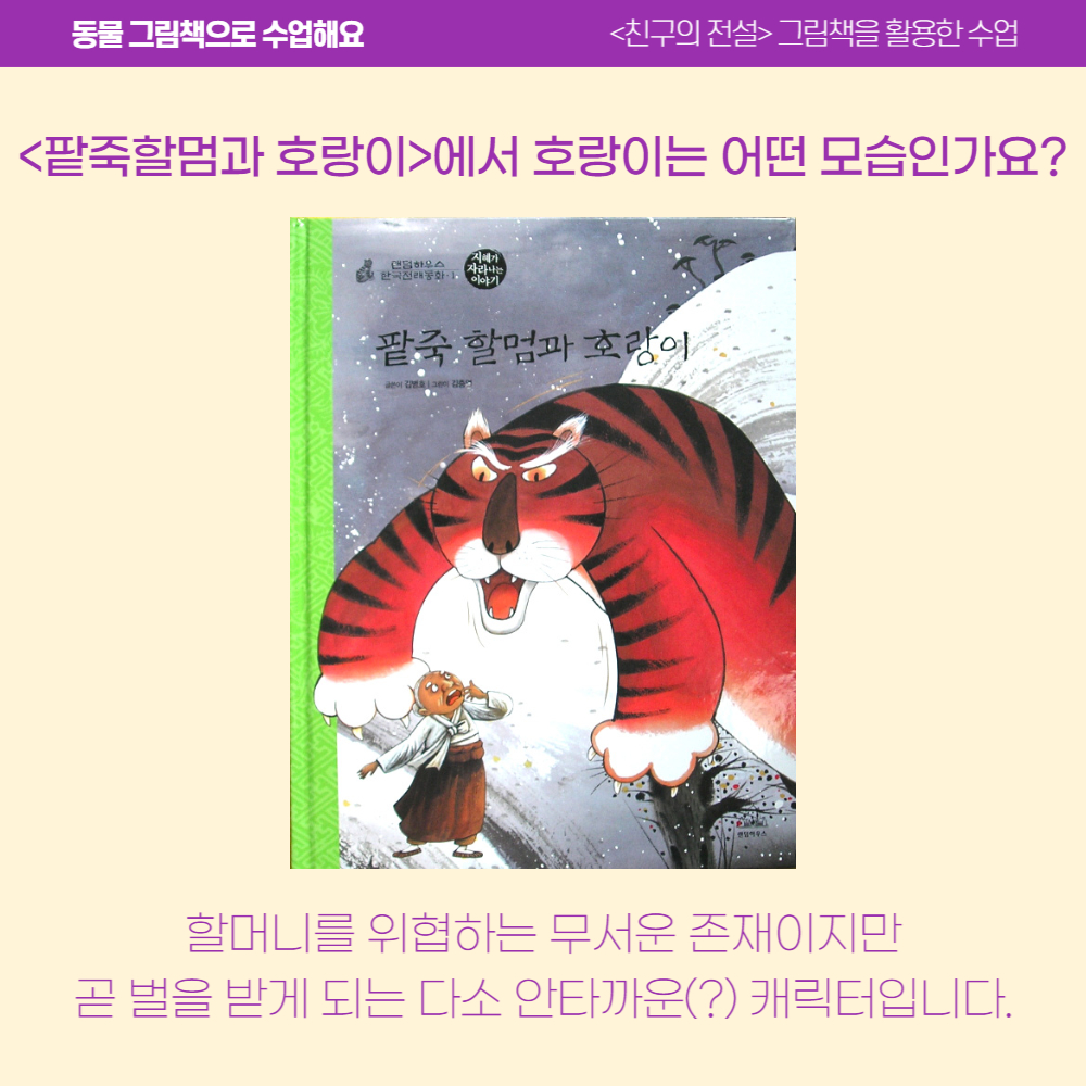 이처럼 호랑이가 우리에게 친숙한 이유는 그 옛날부터 다양한 모습과 성격을 녹여낸 조상들의 옛이야기 때문이 아닐까요?