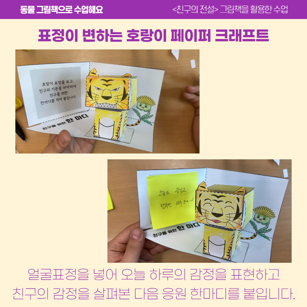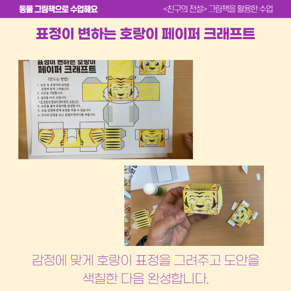 이를 응용하여 표정이 변하는 호랑이 페이퍼크래프트를 만들었어요.