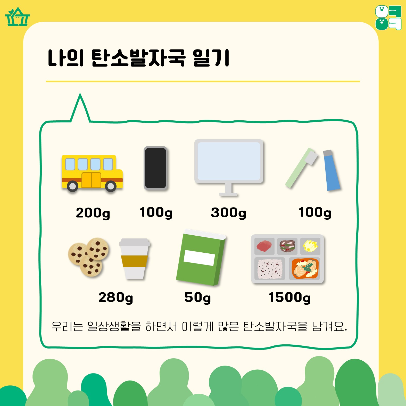 나부터, 오늘부터 탄소발자국을 줄이기 위해 함께 노력해요!🌳💚