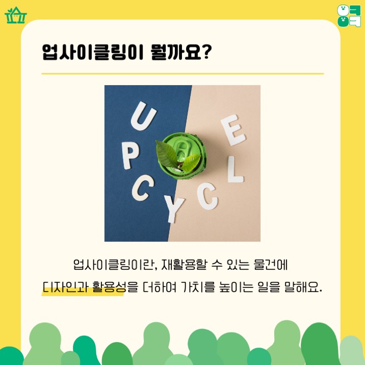 그리고 더 활발한 업사이클링을 위해서 우리가 할 수 있는 일에 대해 알아보아요.😀