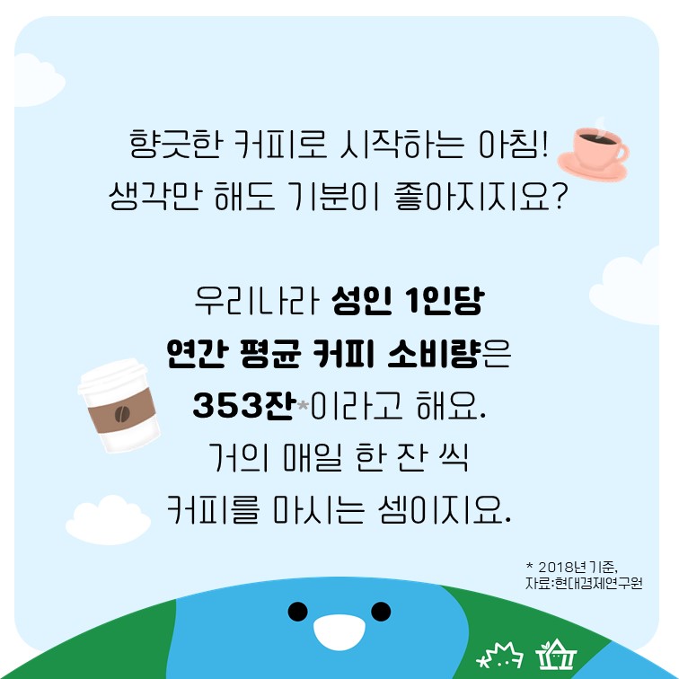 우리나라에서는 일년에 약 50만톤의 커피 찌꺼기가 발생해요.