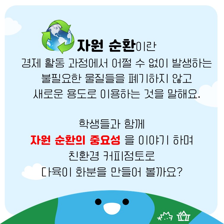 학생들과 함께 자원 순환의 중요성을 이야기 하며