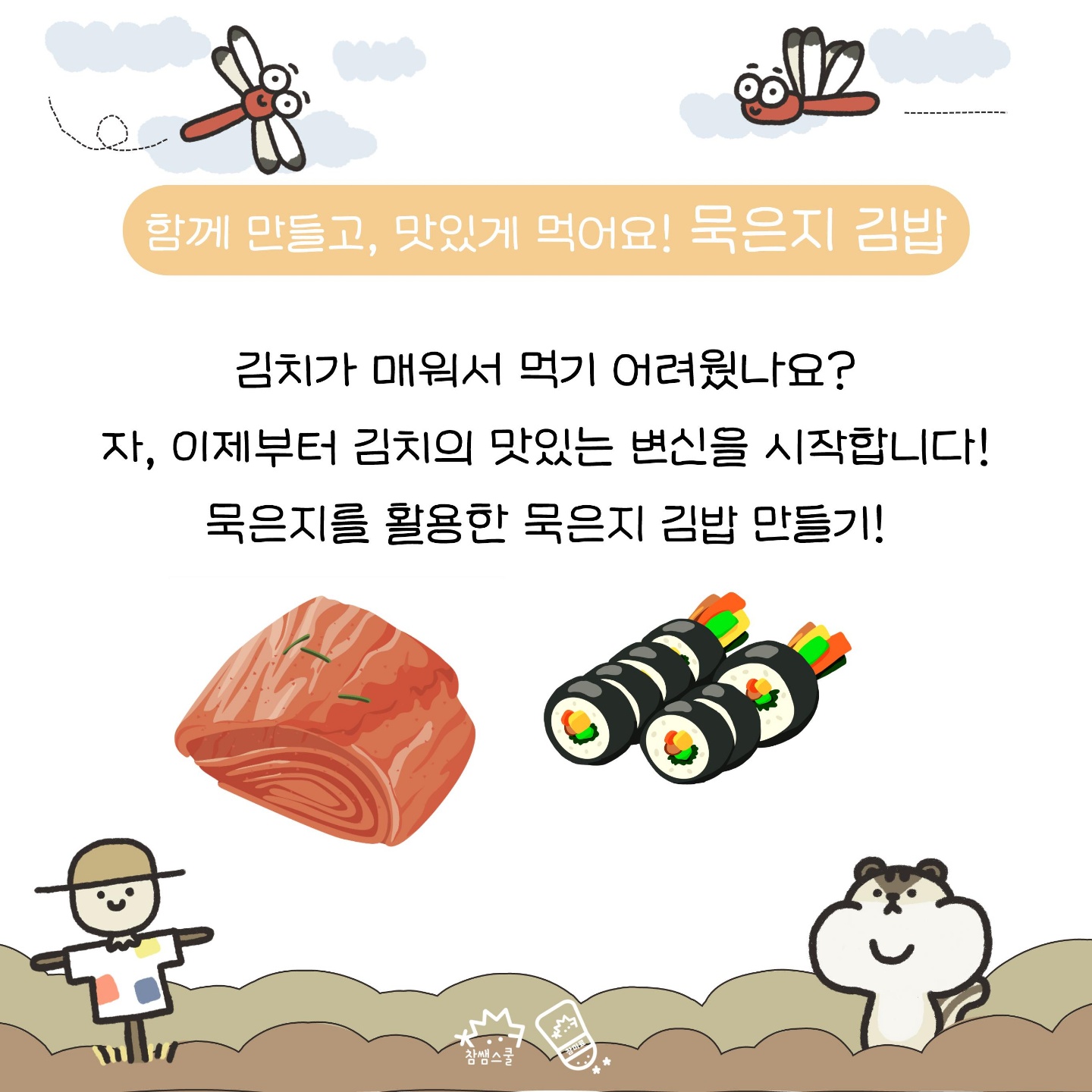 🍚학교에서도, 가정에서도 학생들이 쉽게 함께할 수 있는 묵은지김밥 레시피도 준비했습니다.