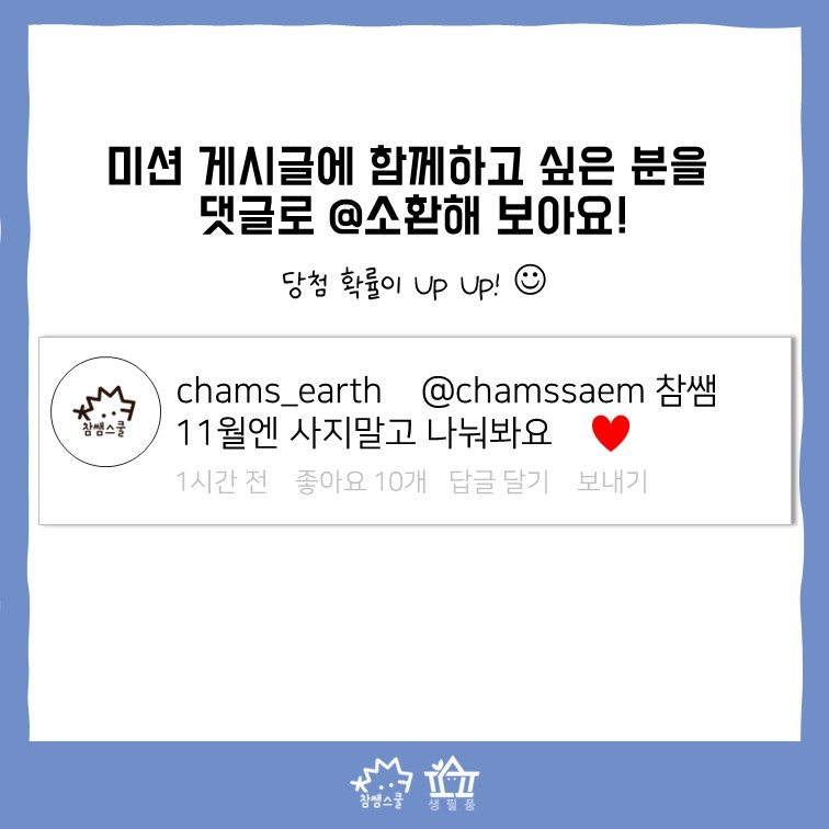 실천 결과를 SNS에 태그와 함께 공유해주시면 추첨을 통해 선물도 드려요!