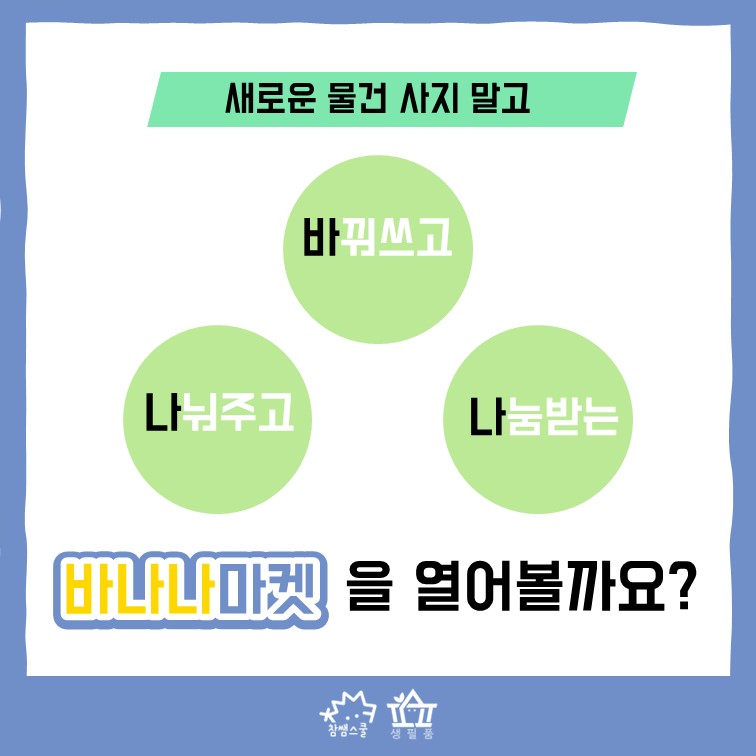 바나나 마켓은 '바'꿔쓰고 '나'눠주고 '나'눔받는 공간이에요.
