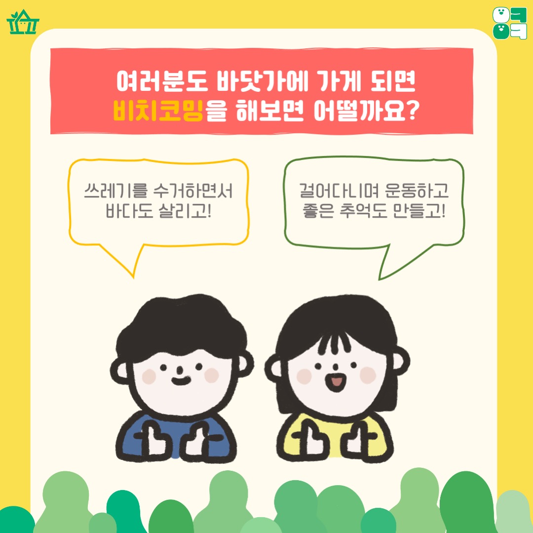 이제는 우리 ‘비치코밍’을 실천하면서 깨끗한 바다로 만들어봐요.
