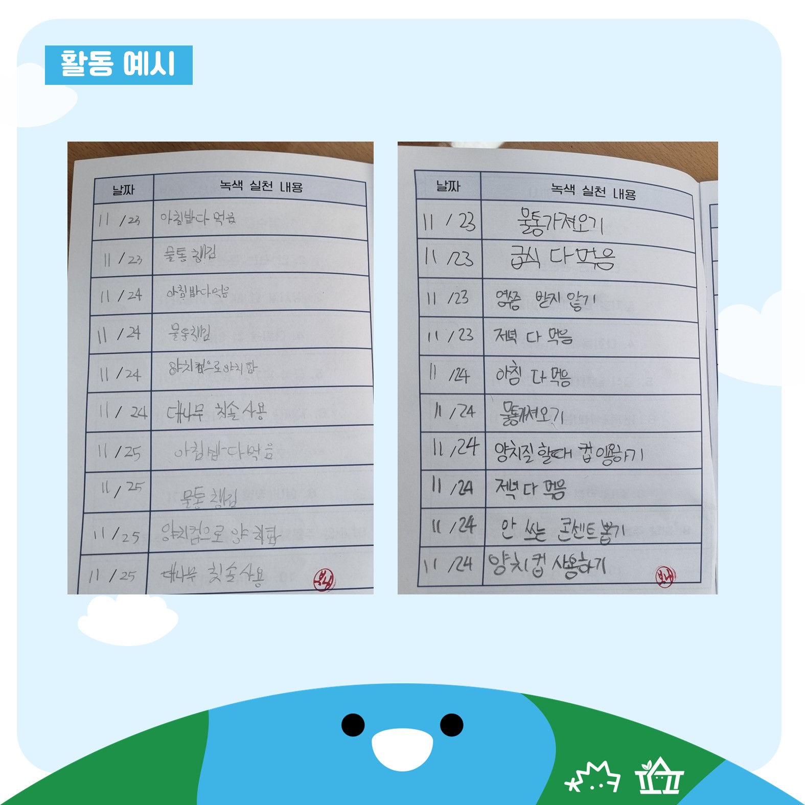 매일매일 에코 통장에 녹색 실천을 적고✏