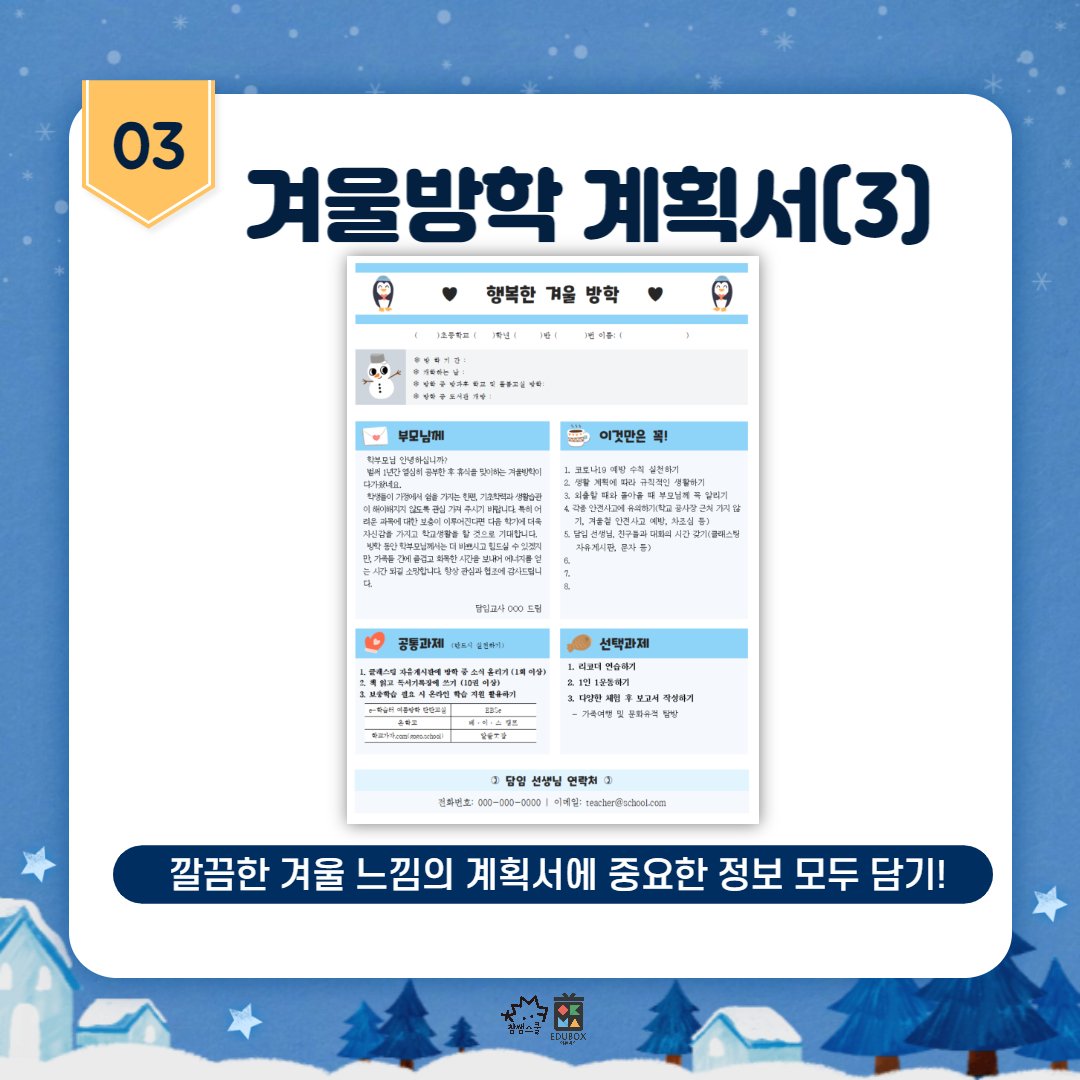 겨울방학 계획서, 가정통신문_5기 이주영, 7기 권한결, 7기 박수빈 (학급에 맞게 수정해서 활용하세요!)