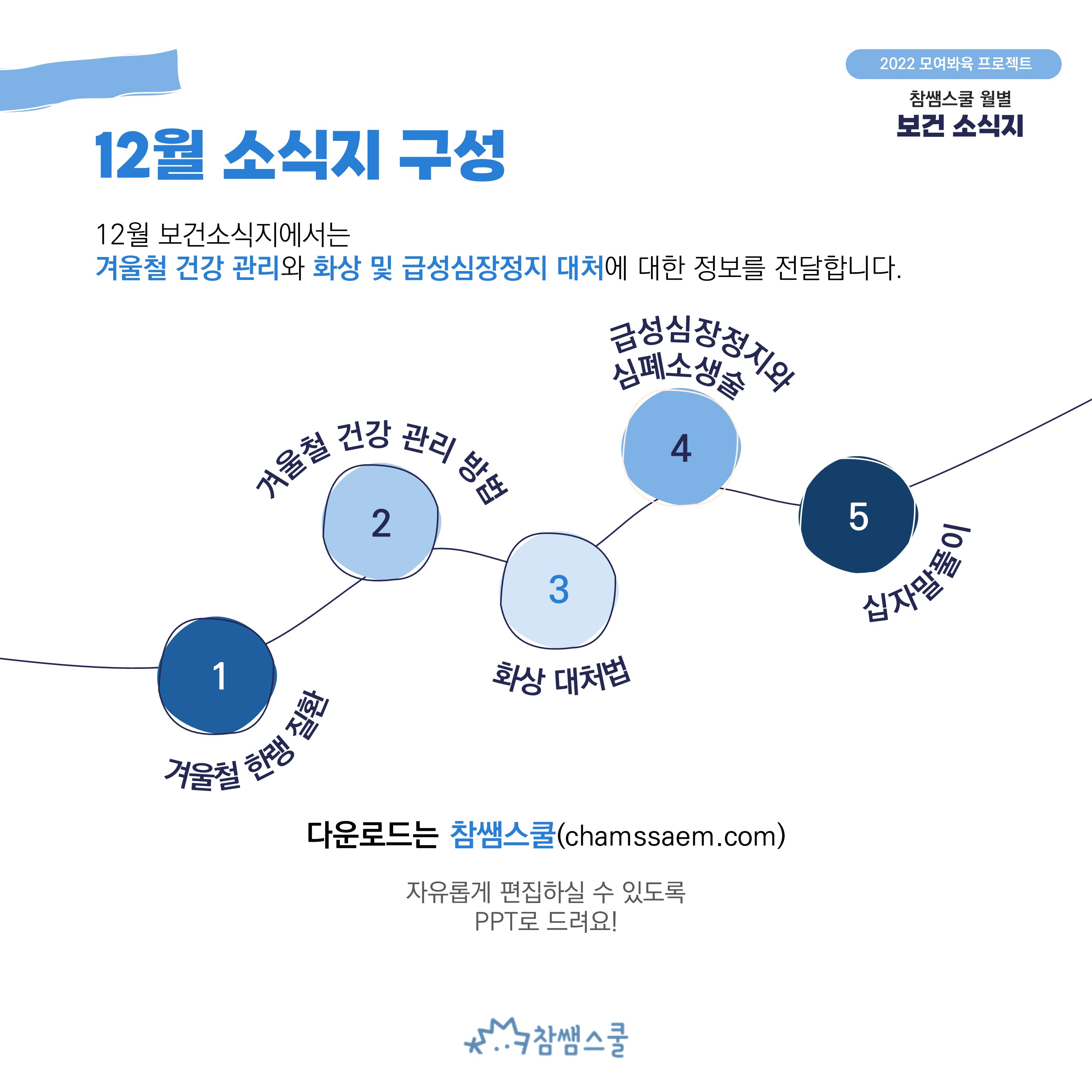💡참쌤스쿨 6기 선생님들이 함께 만드는 보건 소식지, 12월호가 돌아왔습니다☃️ 매달 필요하고 알찬 내용을 듬뿍 담아 만든 보건 소식지! 우리 학교에 맞게 마음껏 수정도 가능하답니다🤗