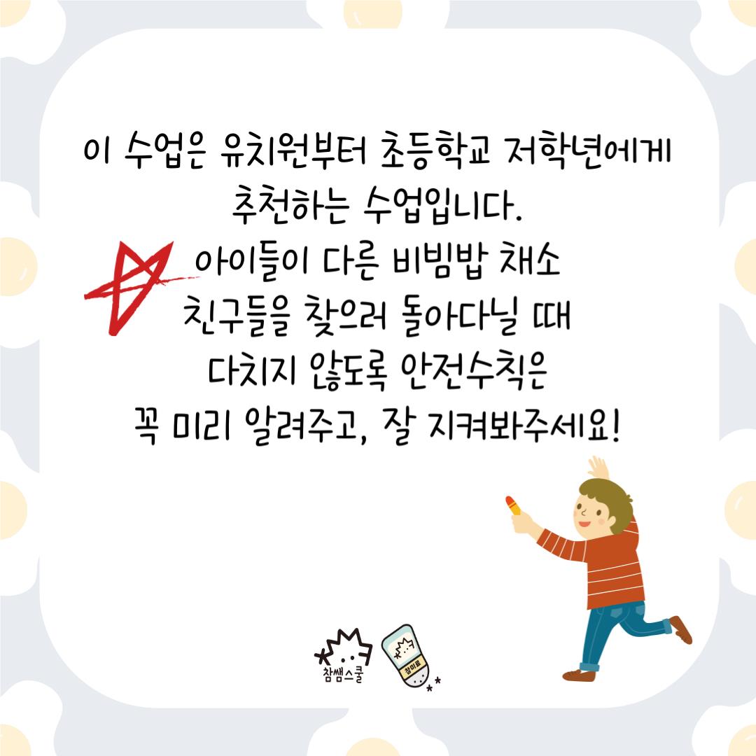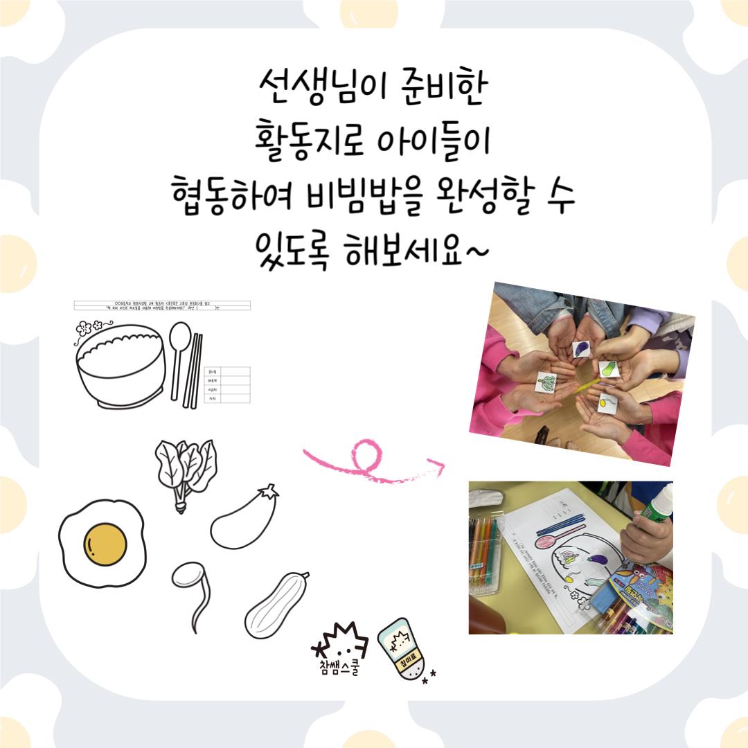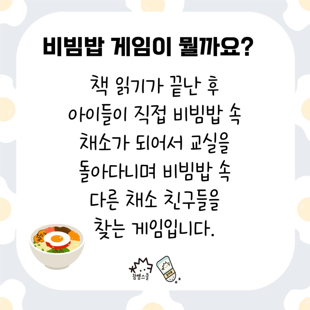 🌶️책을 읽고 난 후엔 협동을 통해 해결할 수 있는<비빔밥 만들기> 게임을 진행해보세요!