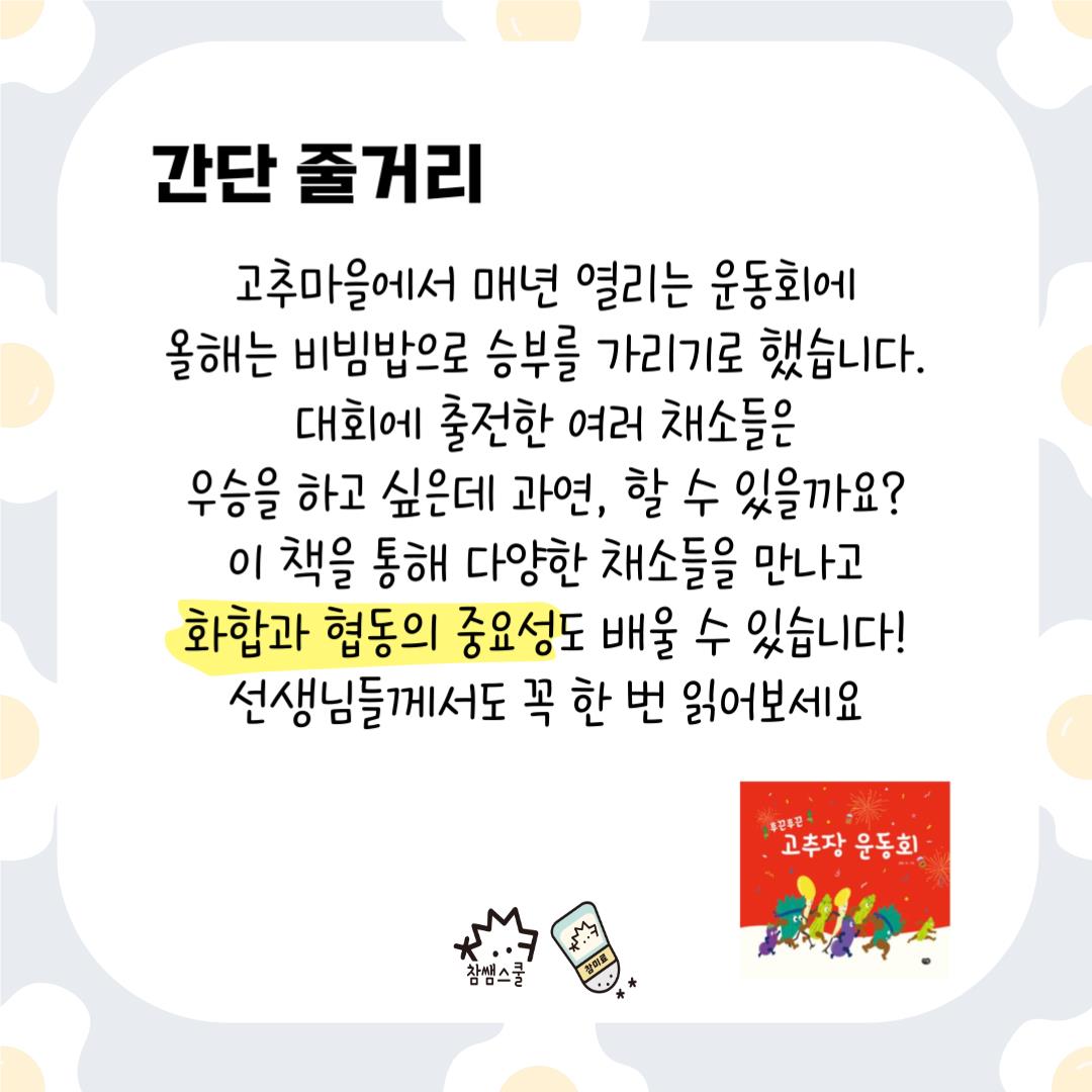 🌶️그림책은 <후끈후끈 고추장 운동회> 글, 그림 오드 / 다림 출판사 작품으로
