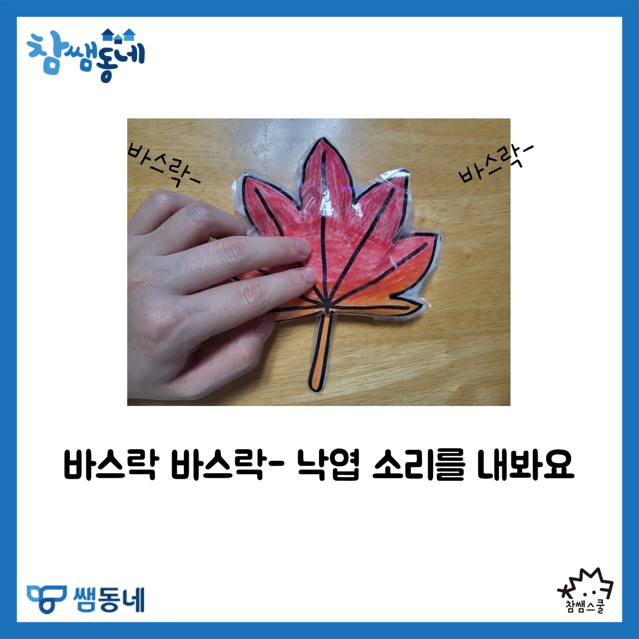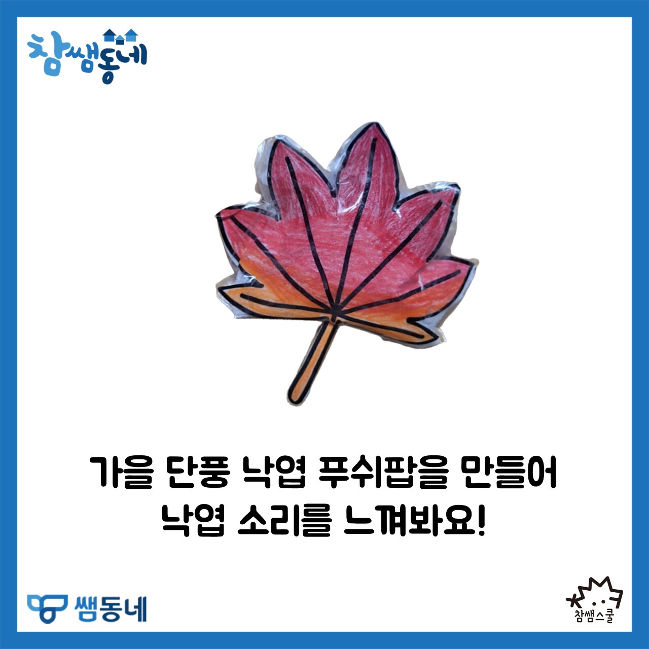 알록달록 단풍이 드는 계절, 가을! 우리 교실에서도 가을을 느껴봐요🍁🍂 가을 단풍 낙엽 푸쉬팝을 만들어 가을 낙엽 소리를 내 보세요. 바스락 바스락- 소리가 나의 마음에도 가을을 불러와줄