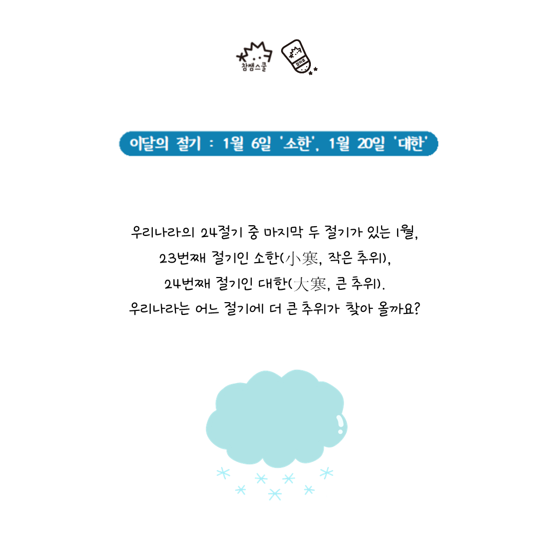 🌬️❄️ 1월에는 우리나라 24절기 중 마지막 두 절기가 있어요.