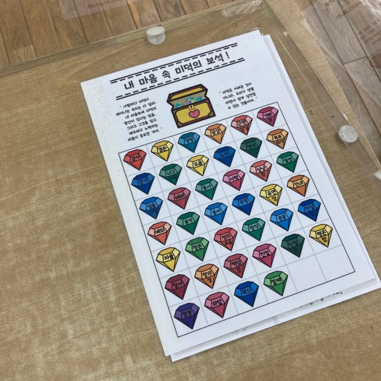 (보석 모양인 이유는 저희 반에서는 미덕 프로젝트가 베이스가 되기 때문입니다.)