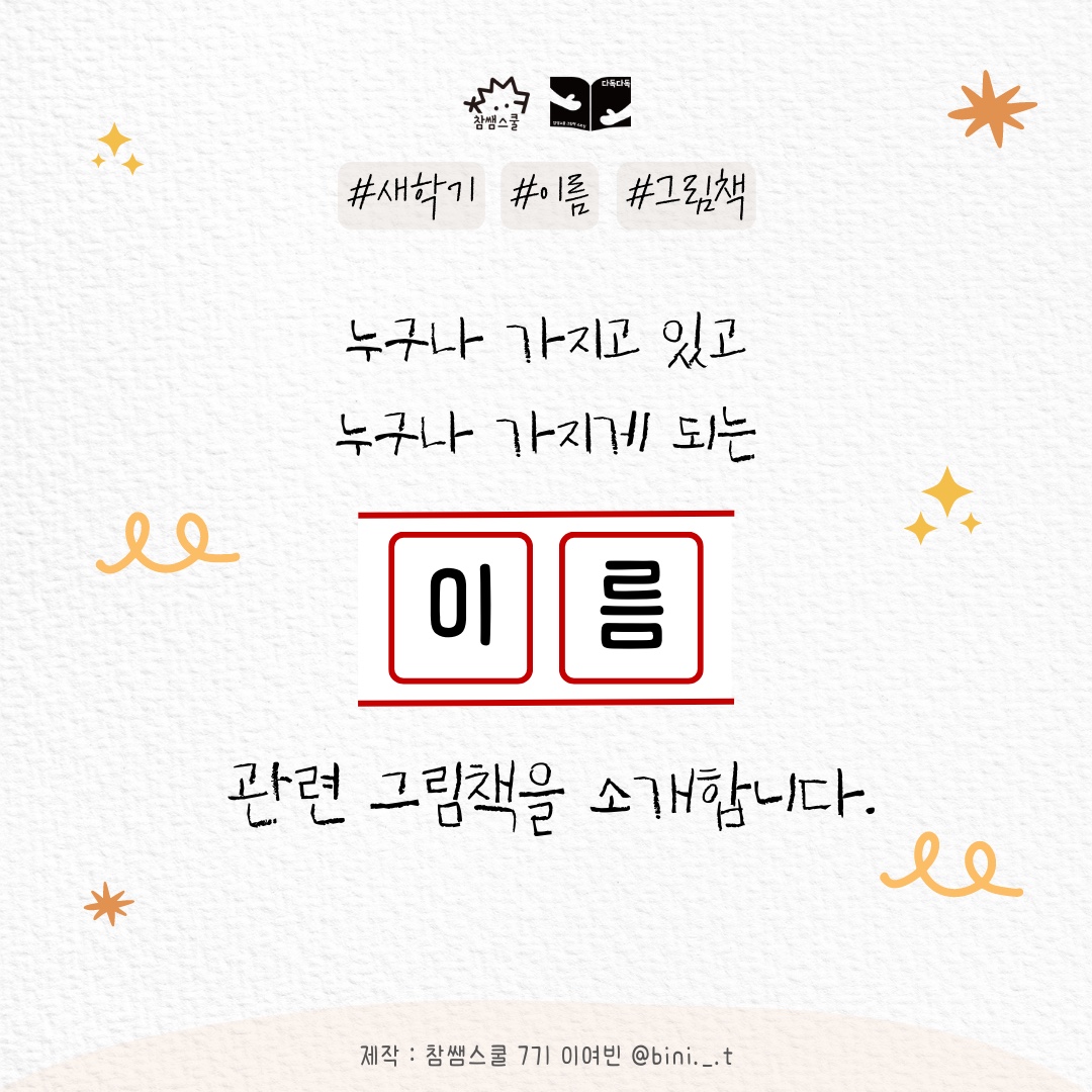 #참쌤스쿨 #다독다독 #그림책 #이름그림책 #새학기그림책