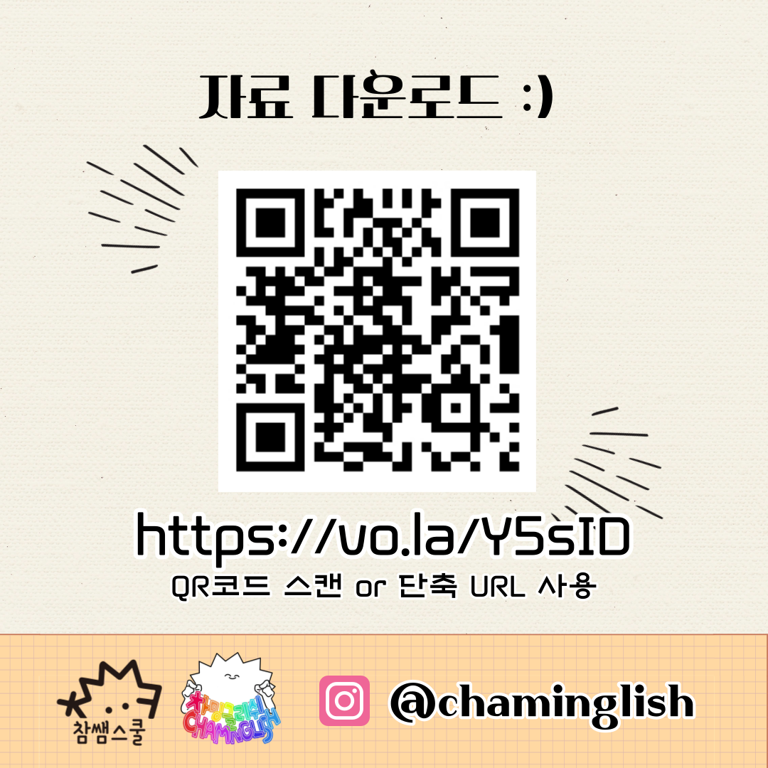 저희 차밍글리시의 권희정 선생님께서 선생님들을 위해 준비했습니다.