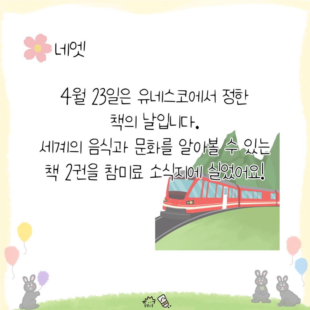 책과 저작권의 날에 읽어보면 좋을 세계음식, 문화에 관련된 그림책을 소개합니다.