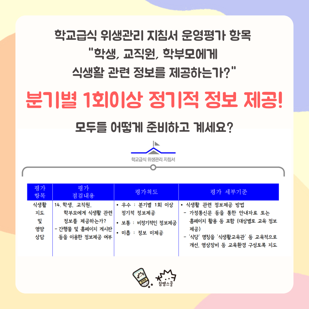 분기별 학부모, 교직원 대상 영양소식지로 찾아왔습니다.
