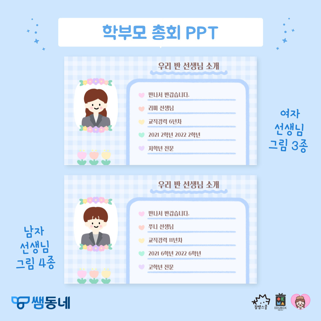 🌷 템플릿과 어울리는 다양한 선생님 캐릭터를 준비했어요. 🌷