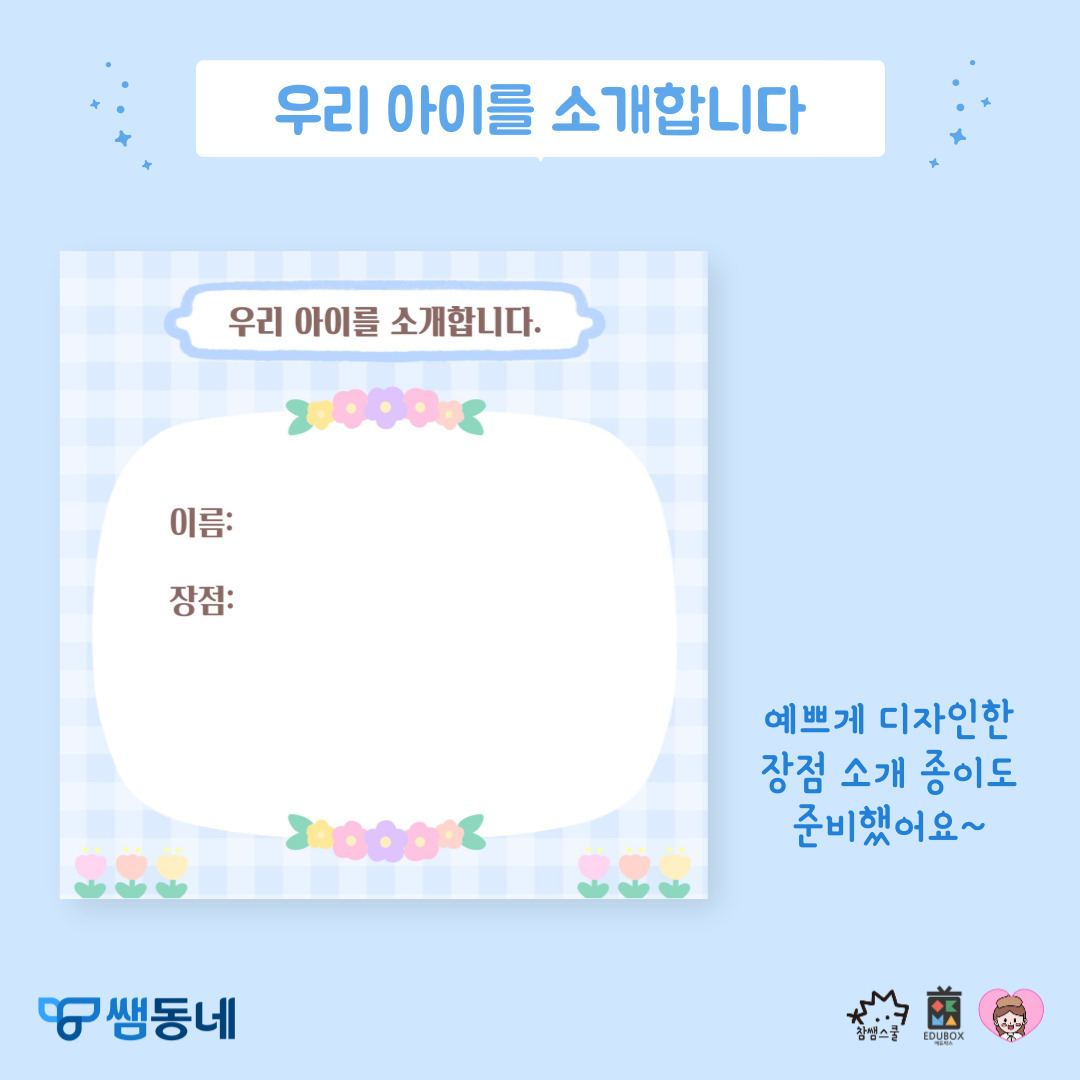 🌷 예쁘게 디자인한 장점 소개 종이도 준비했어요. 🌷