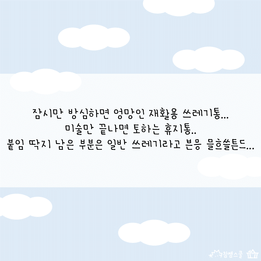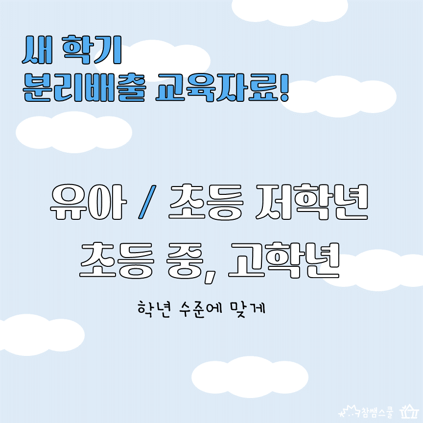 교육활동 중에 생기는 다양한 쓰레기. 매번 "선생님 이거 어디에 버려요?"라는 질문은 이제 그만! 한 번 배워두면 아이들끼리 잘 알려줘서 선생님의 수고를 덜어주는 분리배출 교육자료가 왔어요~!