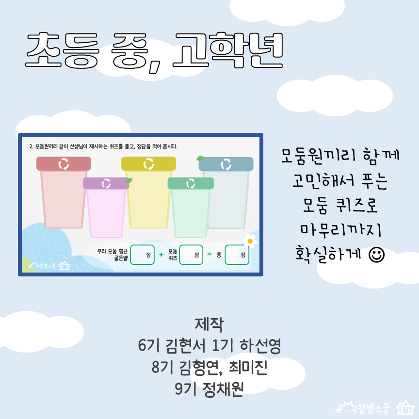 초등 중/고학년: 1기 하선영(@seon0_ha), 8기 김형연, 9기 정채원(@chaeone_poindexter_613) 제작
