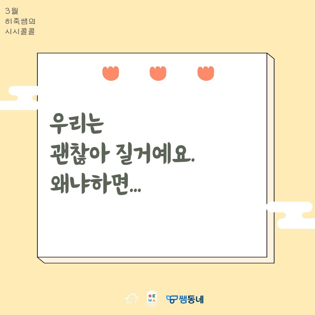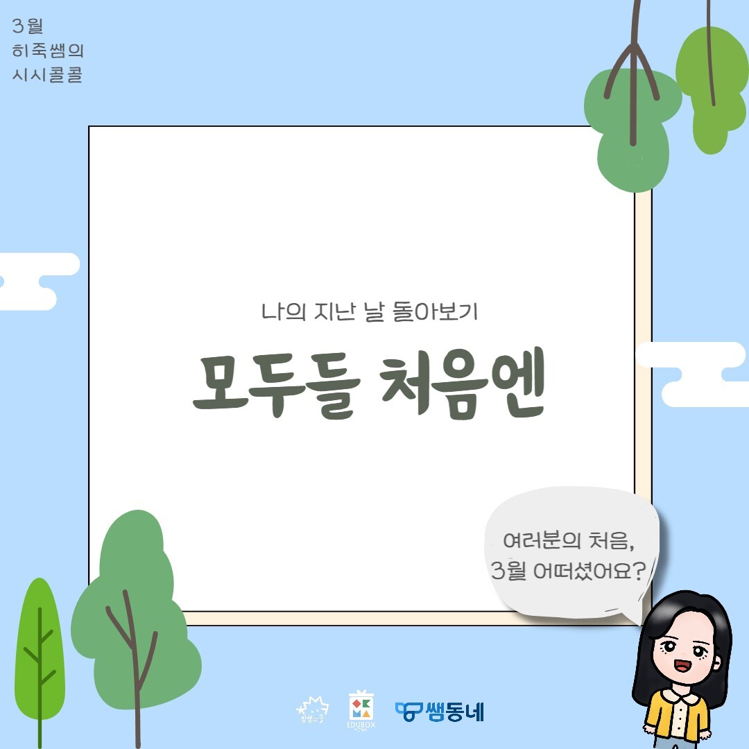 3월이 끝나가고 있습니다 (소리 질러엇!) 선생님의 3월은 어떠셨나요? 새로운 반, 새로운 아이들, 어쩌면 새로운 학교! 3월은 왜 매번 겪어도 새로운 지 모르겠어요.😥 아마 우리 아이들도 그러겠