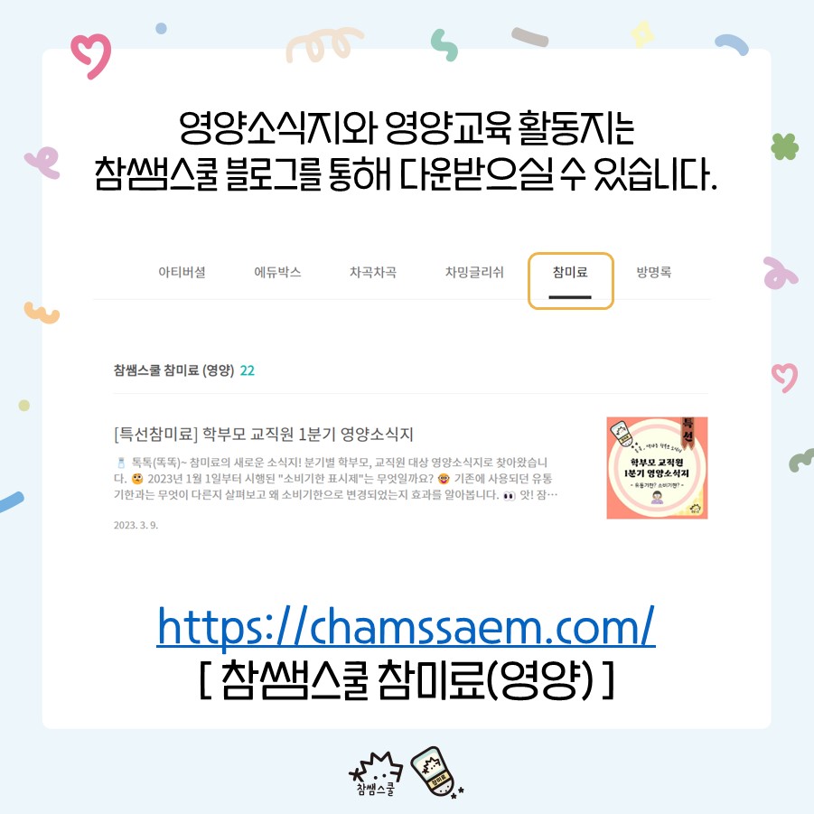 | [영양소식지] 참미료 4월 영양소식지 (2) | 2023.03.06 |