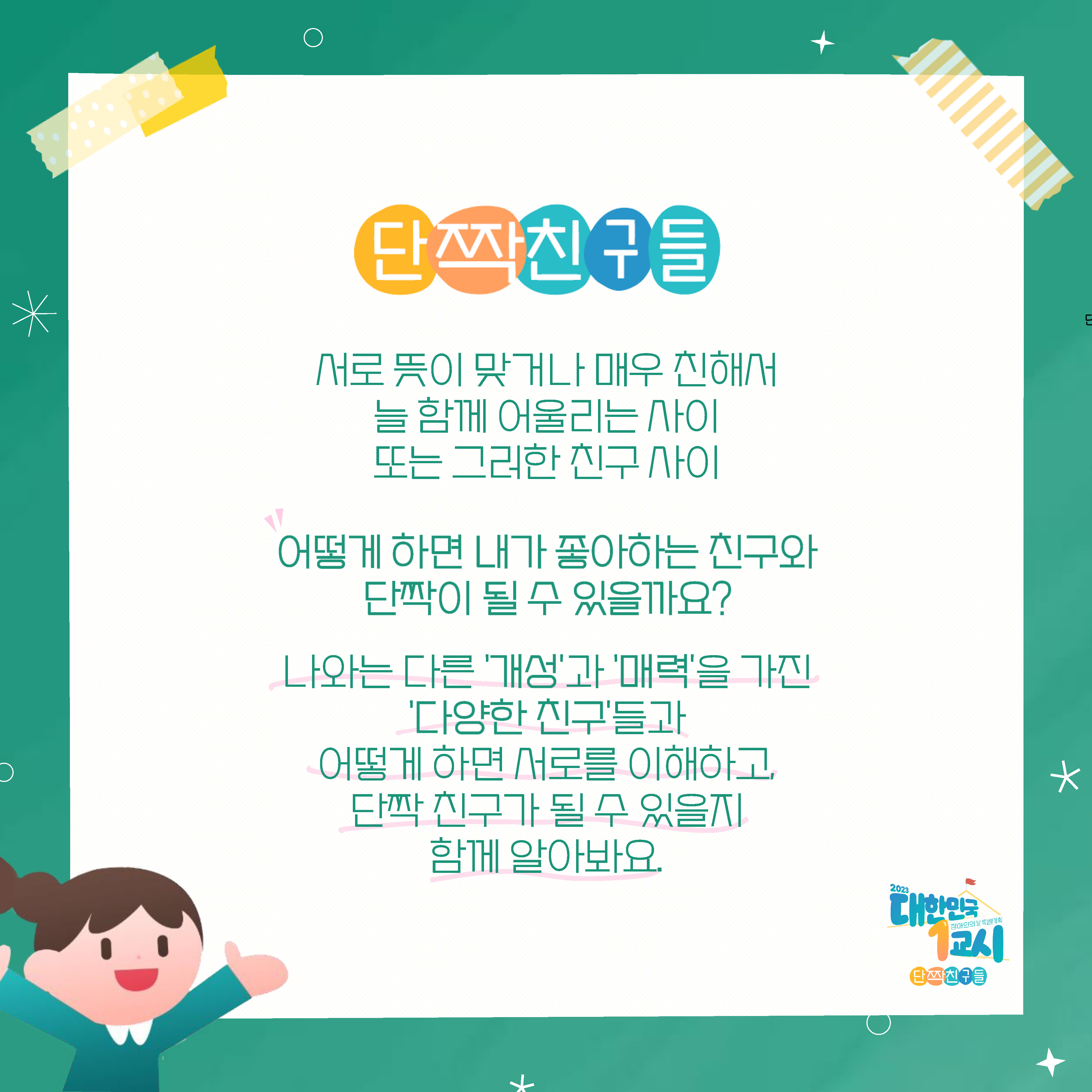 올해도! 2023 대한민국 1교시 – 단짝 친구들 🧑👧