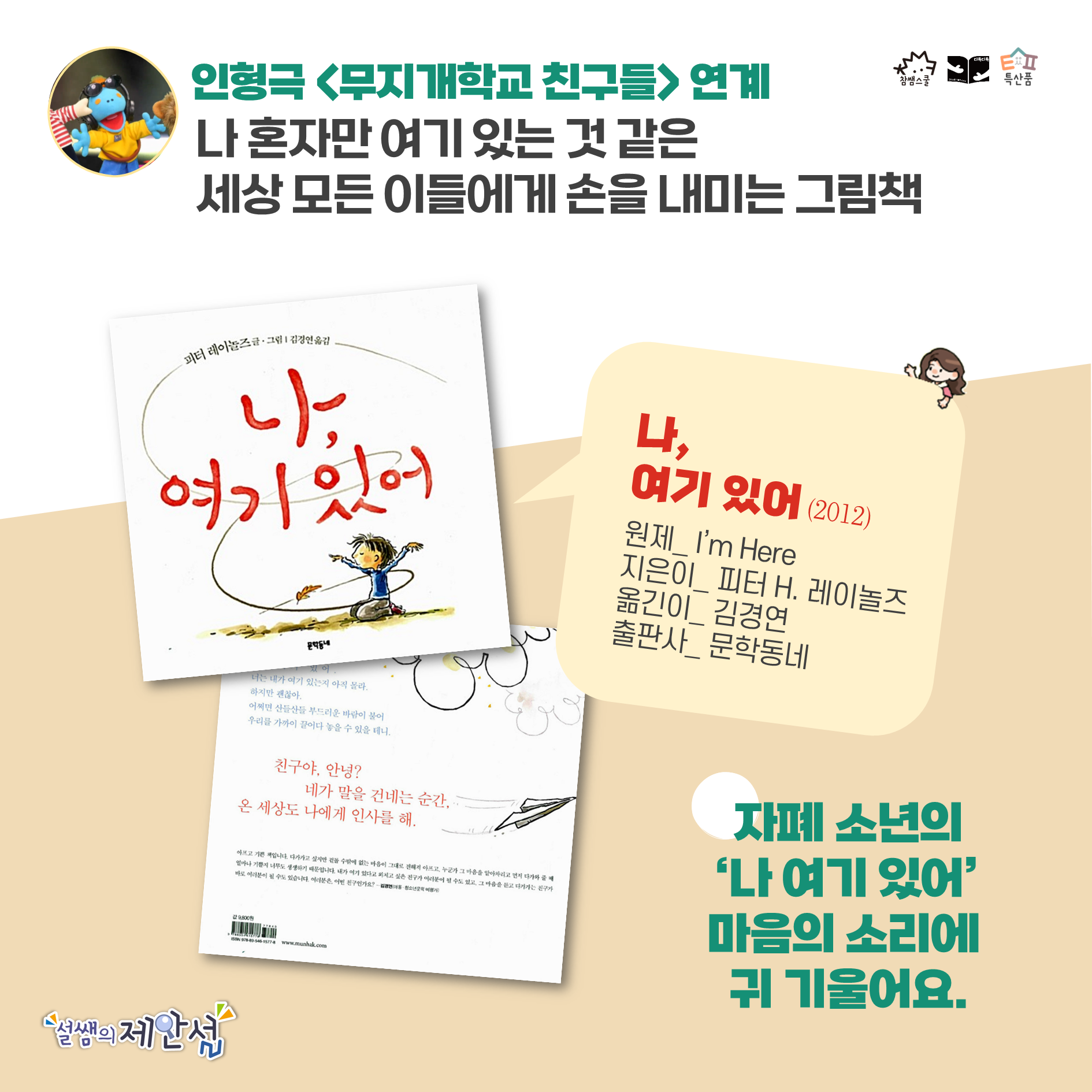 그래서 2023 대한민국 1교시 ‘단짝 친구들’과 연계하여 함께 읽거나 활동해 보면 좋은 그림책을 소개합니다.