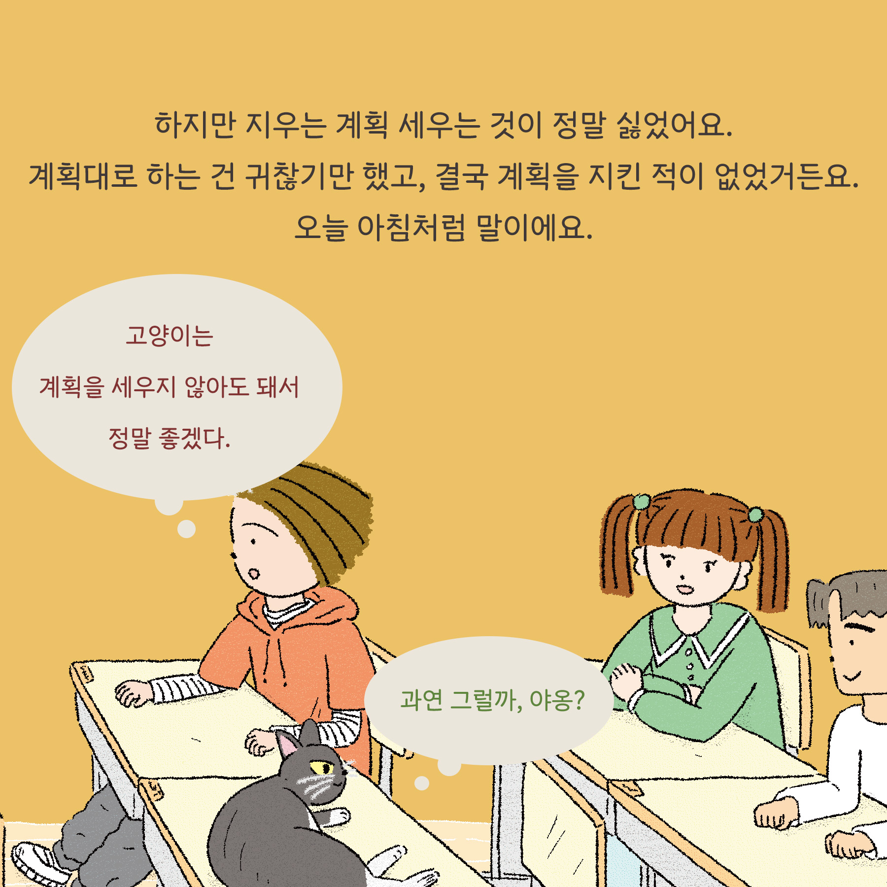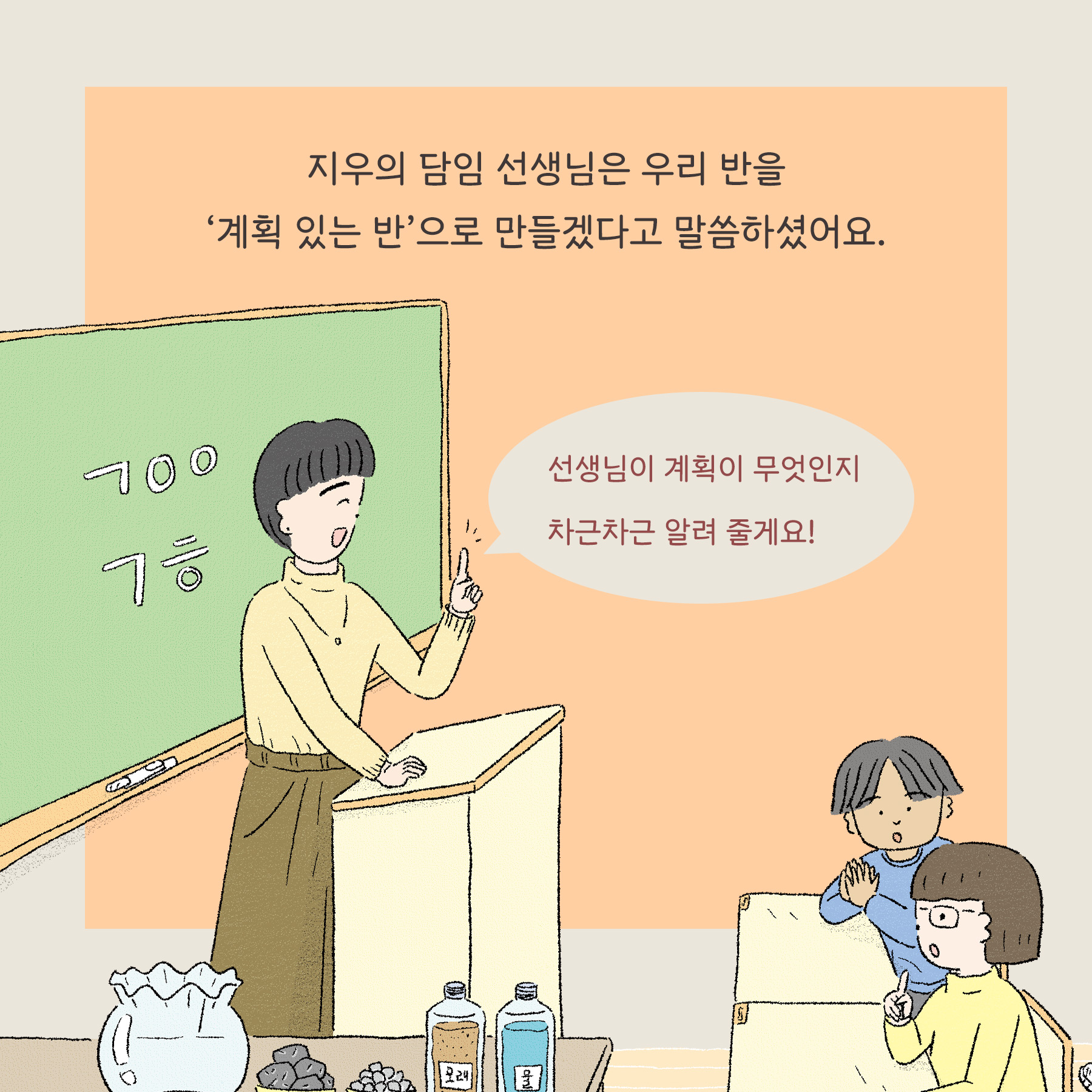 지우와 친구들이 어떻게 계획을 세우고 그것을 실천해 나가는지 알아 볼까요?