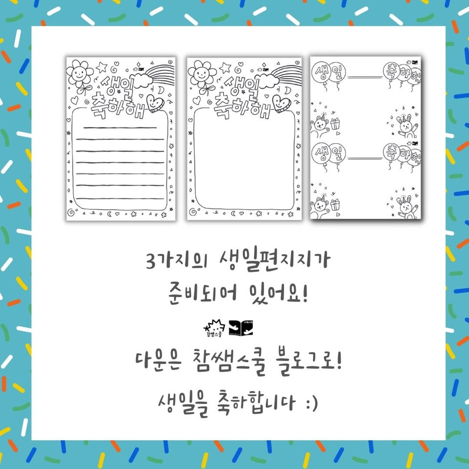 💌생일을 맞이한 친구에게 편지를 써보는 것은 어떨까요? 편지지는 참쌤스쿨 블로그에 준비되어 있답니다!