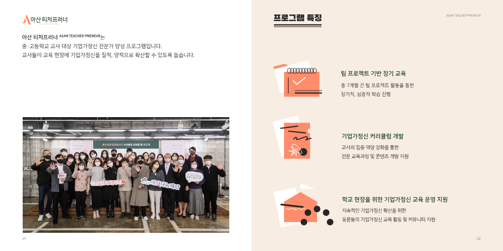 그 중 기업가정신팀에서는 다양한 사업 중 기업가정신 전문 교육자 양성 과정 '아산 티처프러너(Asan Teacher-Preneur)'를 운영하고 있는데,