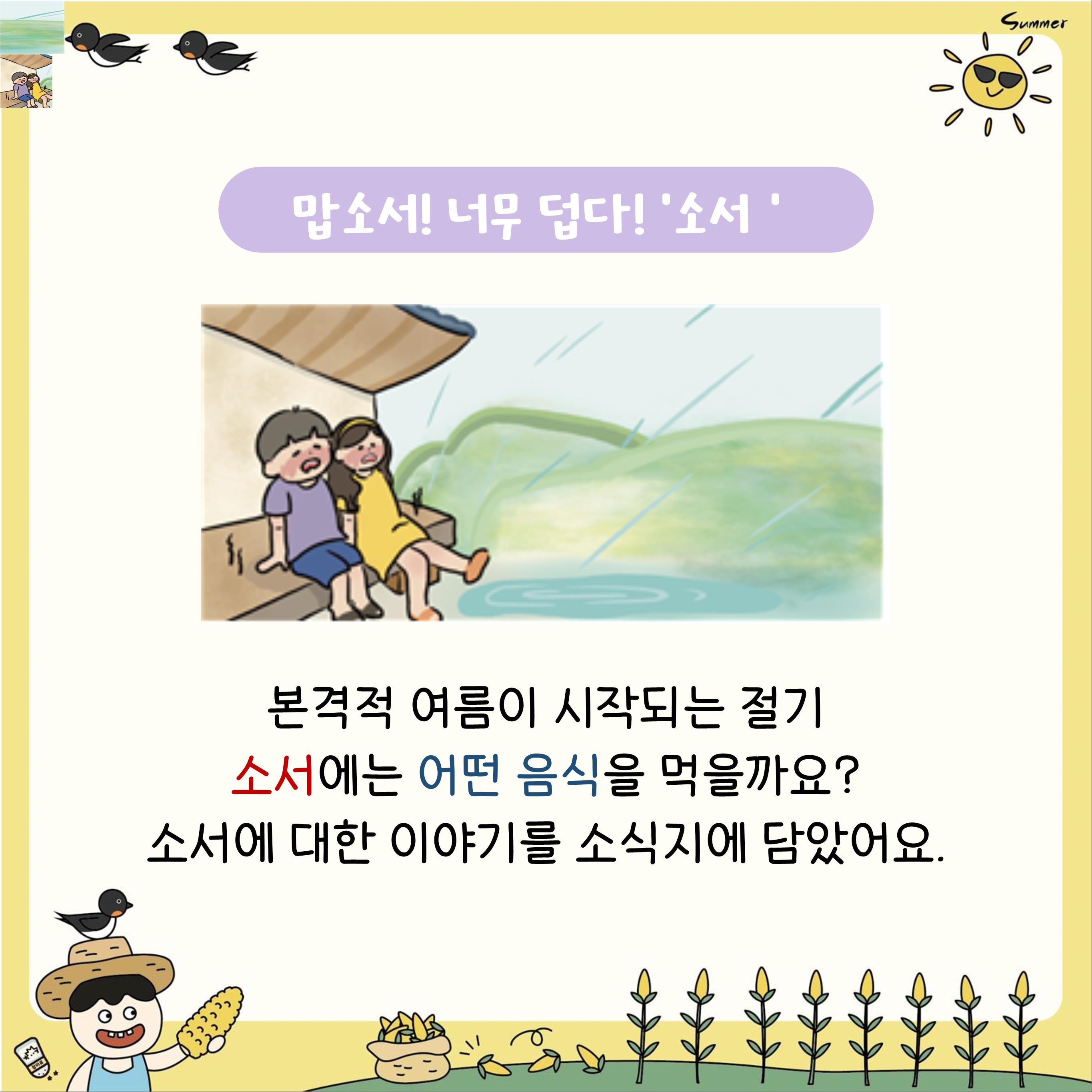 본격적 여름의 시작을 알리는 소서. 소서에는 어떤 음식을 먹는지 알아보아요.