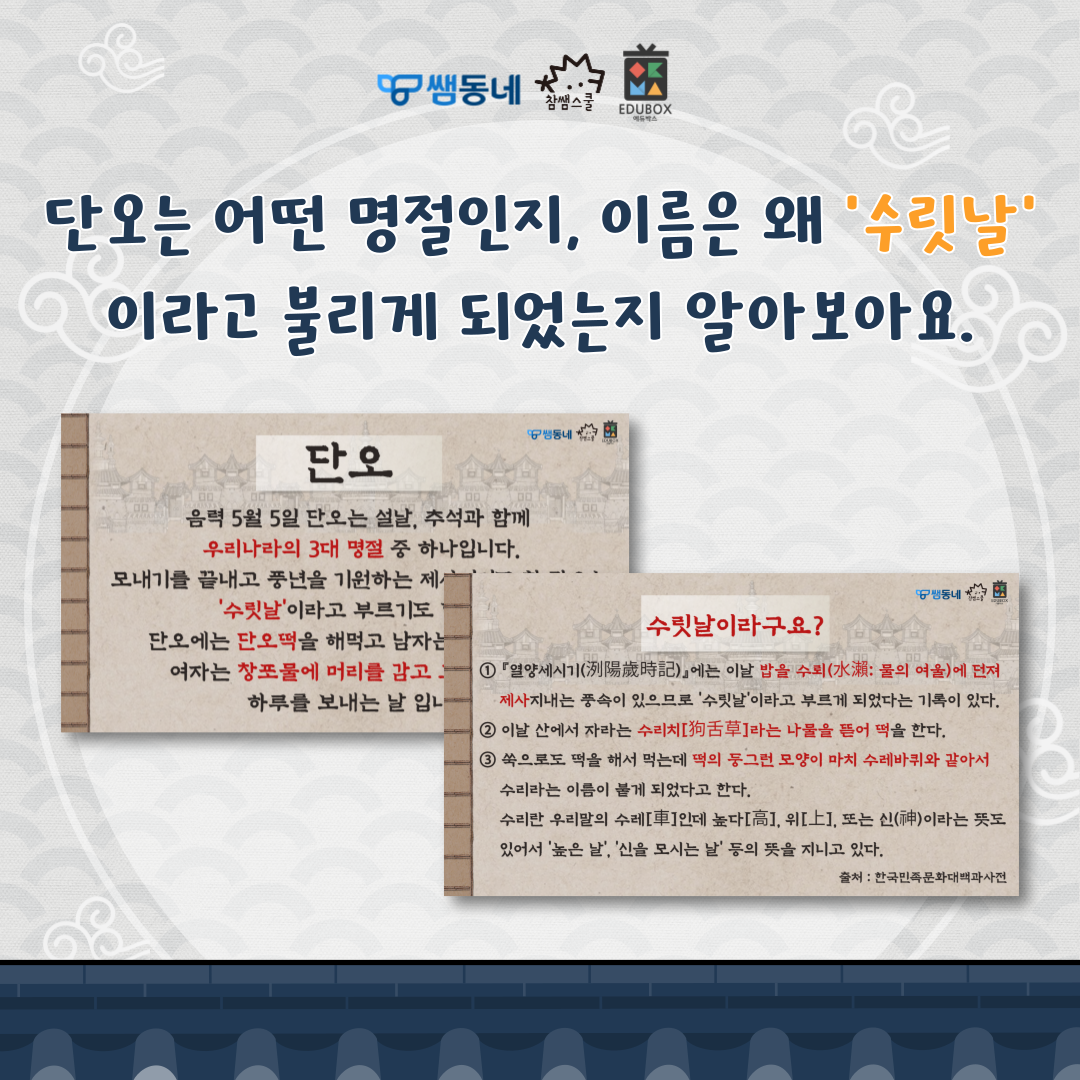 조효현(@hoho_ssaem), 차슬기(@cha0yang)선생님이 전하는 단오이야기,