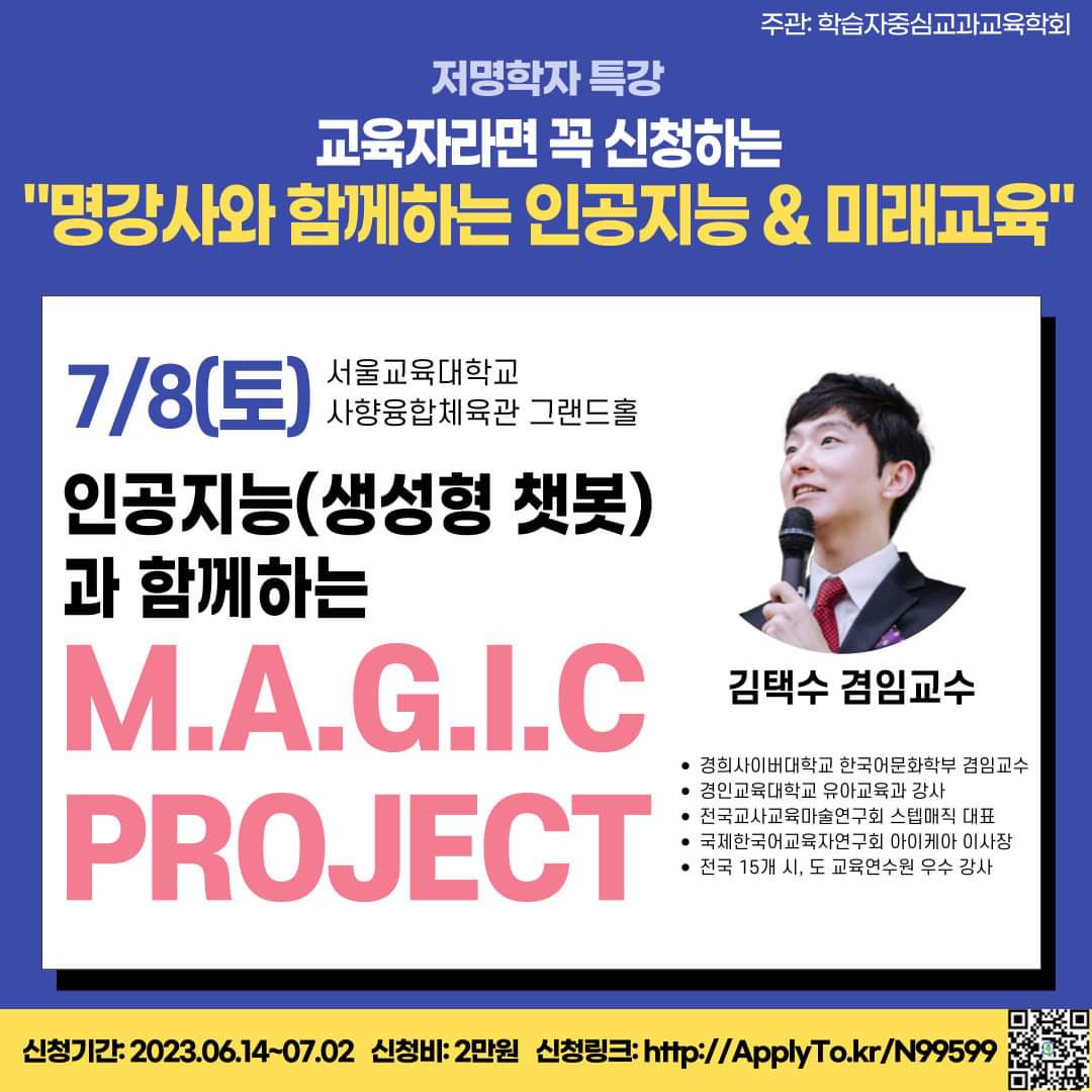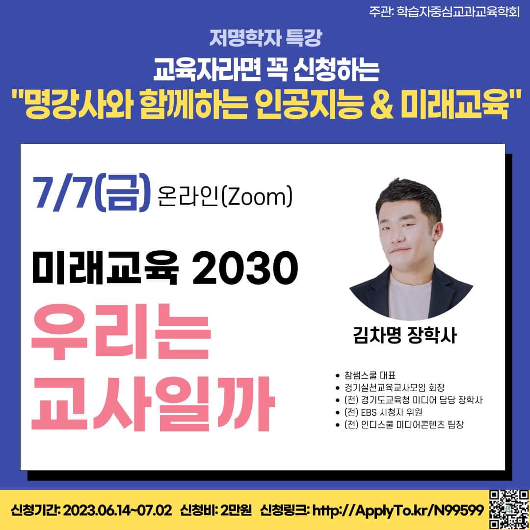 <학습자중심교과교육학회 주관-저명학자특강, ‘명강사들과 함께하는 인공지능과 미래교육’>